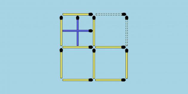 1 jumboqning javobi. Katta maydonning tashqi tomonidagi ikkita gugurtni oling va ularni kichkina maydonchalardan biriga joylashtiring.