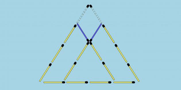 10 jumboqning javobi. Uchburchakning yuqori qismidan ikkita gugurtni suring, shunda uchburchaklarning ikkita kichik uchini olasiz.