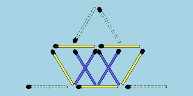 Turli o’lchamdagi sakkiz uchburchak hosil qilish uchun to’rtta gugurtni ajrating. Gugurtlarni bir-birining ustiga yopishtirish mumkin.