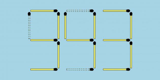 5 jumboqning javobi. Gugurtlarni olib tashlab, to’qqiztasini uchga, sakkiztasini nolga aylantiring.